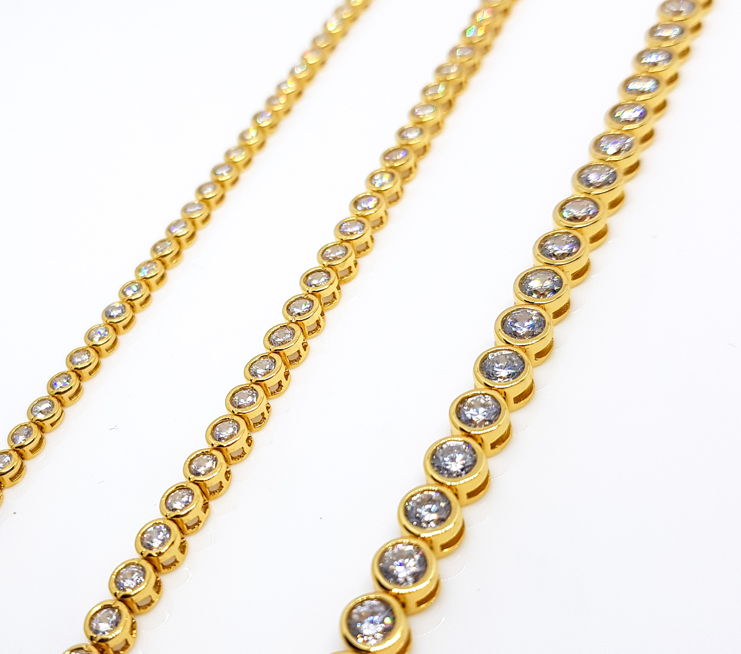 My-bracelet by Loboda zapestnica ELEGANCE Gold je zapestnica izdelana iz srebra čistine 925/1000 z rumeno pozlato in gladko vdelanimi cirkoni, v stilu prestižnih diamantnih "teniških" zapestnic. Velikost zapestnice je univerzalna (M). Zapiranje je varno, saj sta osnovni sponki dodani še dve varnostni (na vsaki strani ena). Izbirate lahko med tremi širinami zapestnice. Cena velja za eno zapestnico določene širine, v galeriji pa vam za lažjo predstavo ponujamo sliko vseh treh širin skupaj. Vsaka zapestnica je lično pakirana v darilni My-bracelet by Loboda embalaži s priloženim certifikatom avtentičnosti. Kot darilo vam ob nakupu podarjamo mošnjiček za shranjevanje nakita.