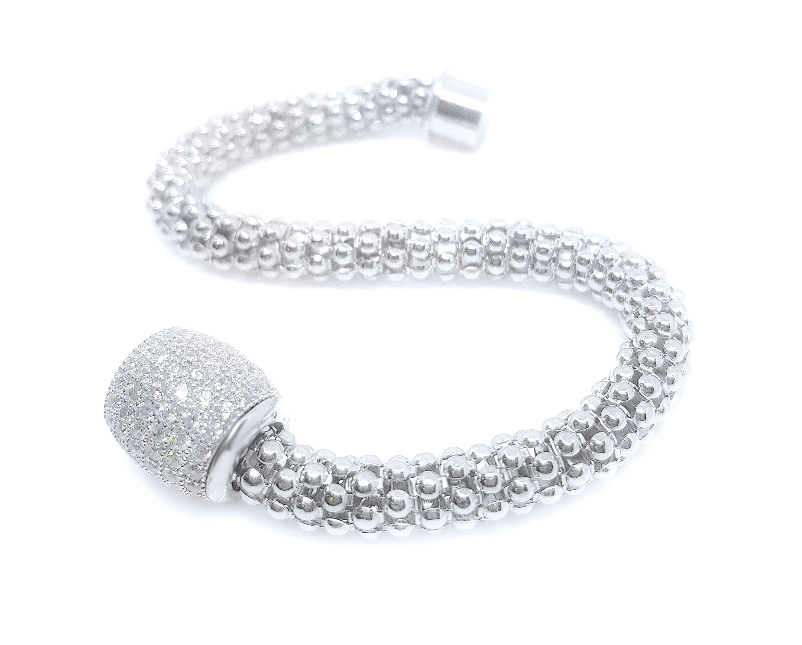 My-bracelet by Loboda zapestnica ELEGANCE VENEZIA White je zapestnica izdelana iz rodiniranegan srebra čistine 925/1000 in cirkoni vdelanimi v močno magnetno sponko, v stilu prestižnih diamantnih gosto pletenih zapestnic. Velikost zapestnice je univerzalna (M). Vsaka zapestnica je lično pakirana v darilni My-bracelet by Loboda embalaži s priloženim certifikatom avtentičnosti. Kot darilo vam ob nakupu podarjamo mošnjiček za shranjevanje nakita.