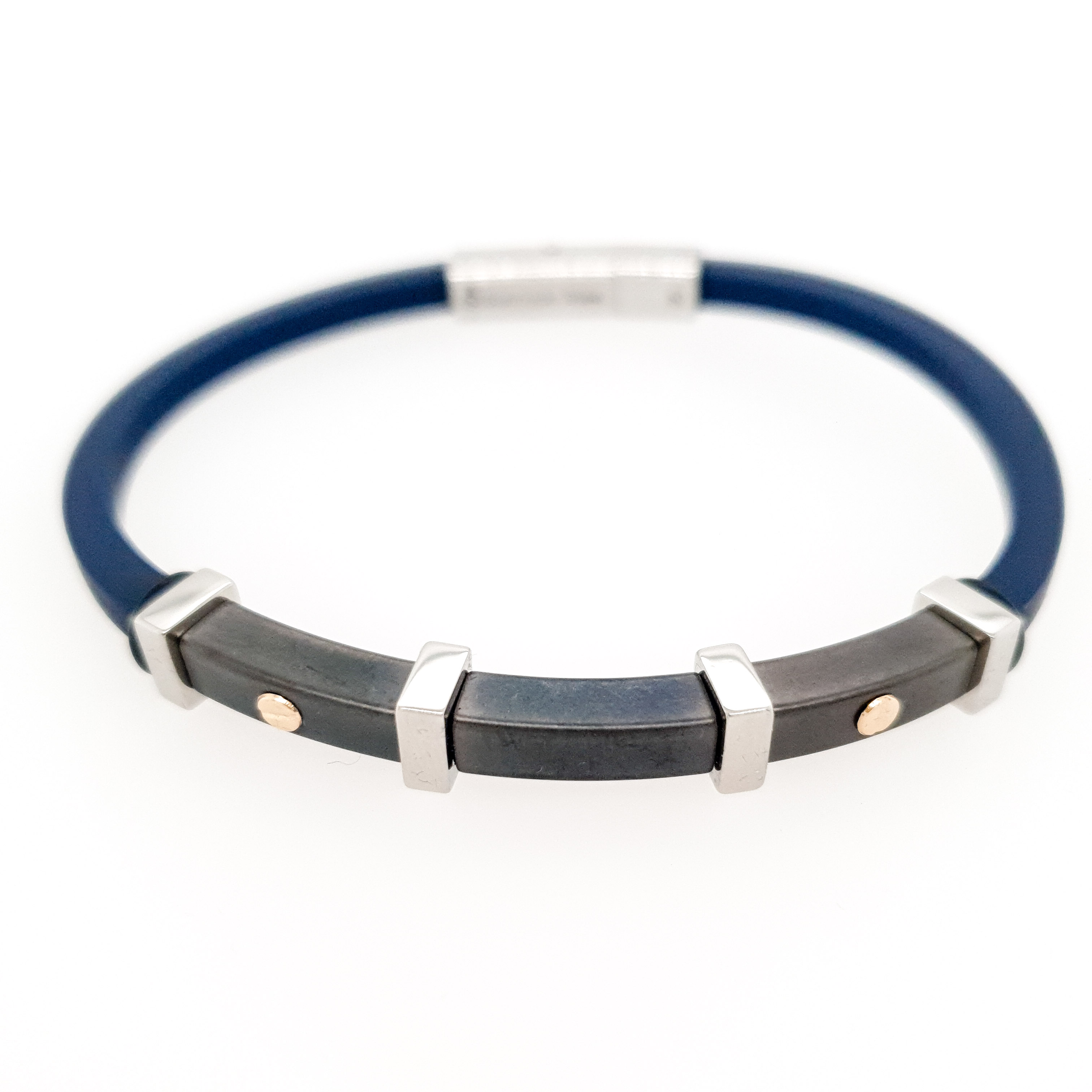 My-bracelet by Loboda zapestnica REBEL Twenty-Five Dark Blue je zapestnica izdelana iz kavčuka, nerjavčega jekla in 18-karatnega rdečega zlata. Vsaka zapestnica je lično pakirana v darilni My-bracelet by Loboda embalaži s priloženim certifikatom avtentičnosti. Kot darilo vam ob nakupu podarjamo mošnjiček za shranjevanje nakita.
