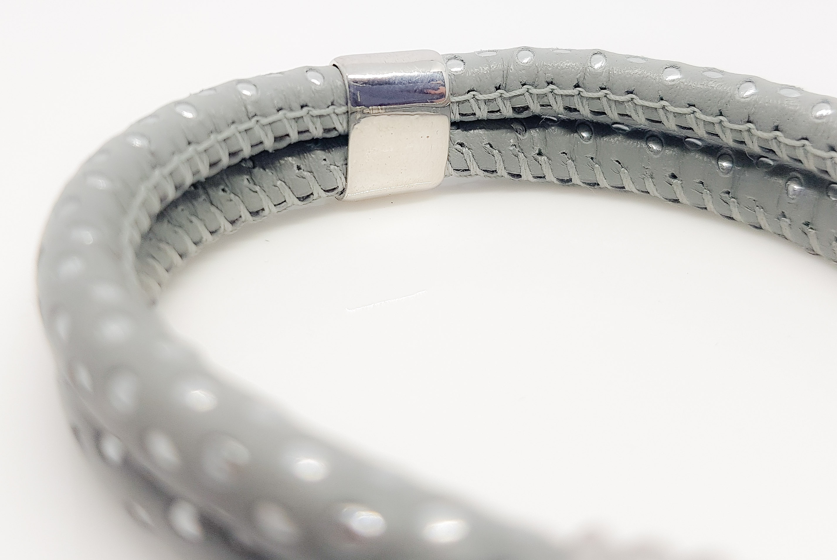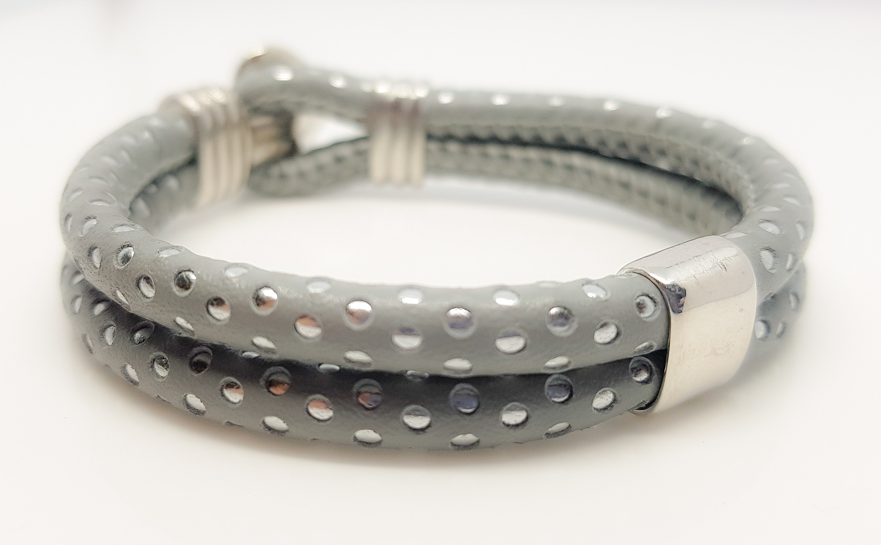 - visokokvalitetno italijansko usnje v sivi barvi s kovinsko aplikacijo