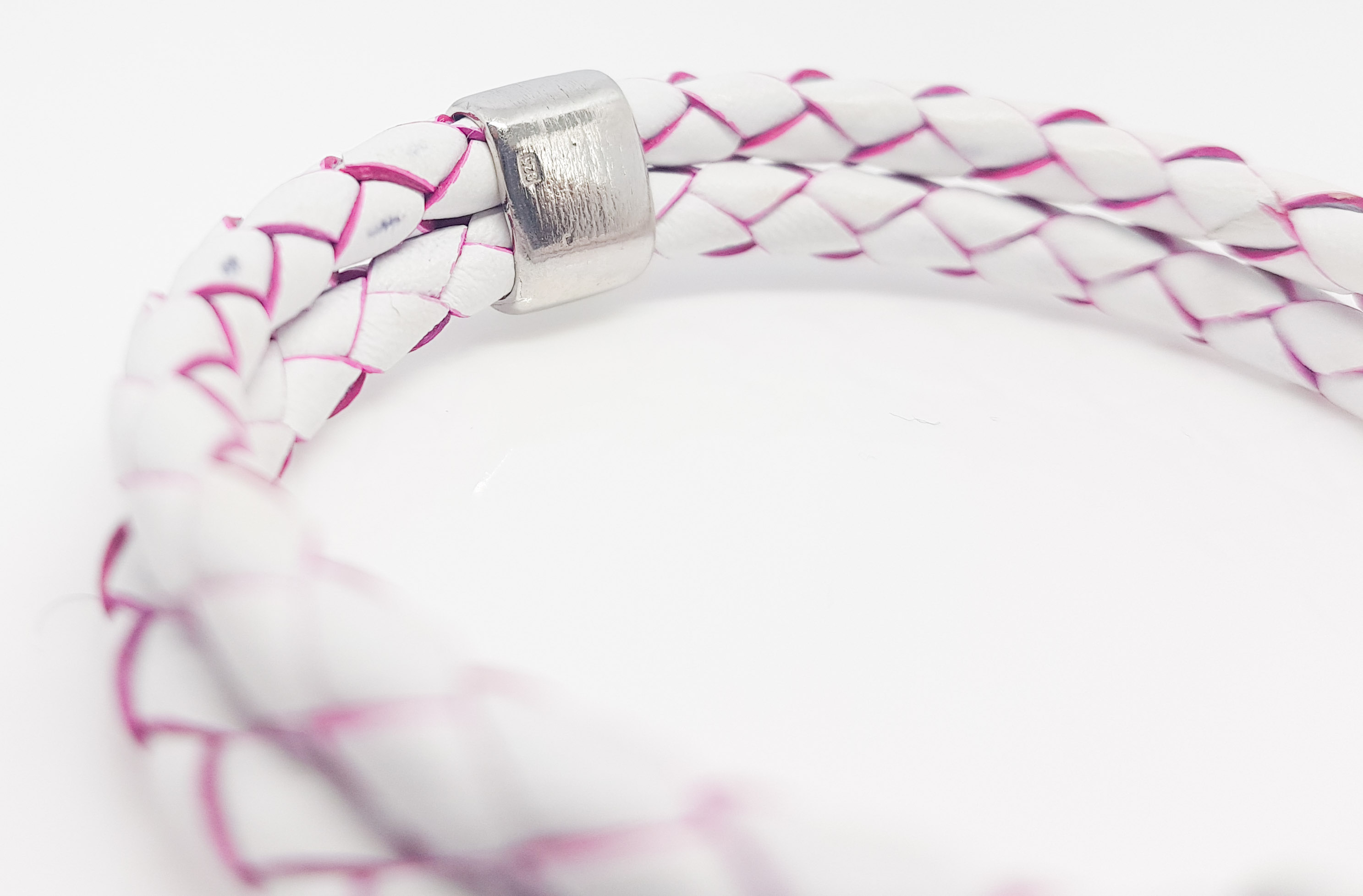 •  visokokvalitetno italijansko pleteno usnje v belo roza barvi