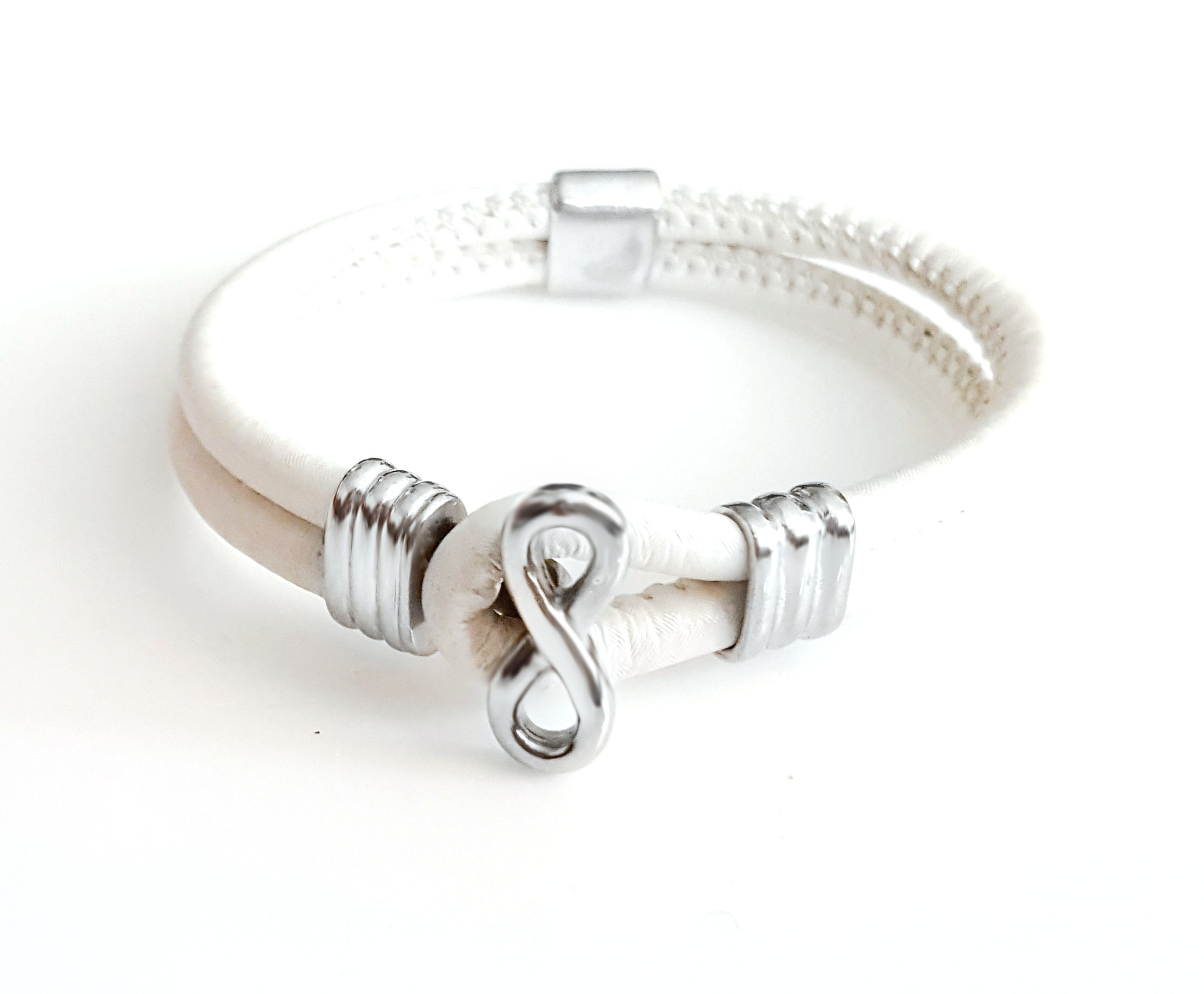 Zapestnica TL INFINITY Snowflake je ročno izdelana iz srebra čistine 925/000 v kombinaciji z visoko kvalitetnim belim italijanskim usnjem. Izbirate lahko med petimi velikostmi. Možnost poljubnega graviranja v premični člen na spodnji strani zapestnice (do 5 znakov). Vsaka zapestnica je lično pakirana v darilni My-bracelet by Loboda embalaži s priloženim certifikatom avtentičnosti. Kot darilo vam ob nakupu podarjamo mošnjiček za shranjevanje nakita.
